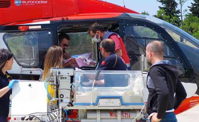 Çorum’da dünyaya gelen ve hastanede tedavi altında bulunan ’parmak bebek’, ambulans helikopterle Samsun’daki hastaneye sevk edildi.