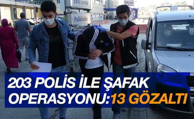 Samsun'da narkotik polisi tarafından düzenlenen, özel harekat polislerinin de destek verdiği 45 ekip ve 203 polisin katıldığı şafak vaktindeki uyuşturucu operasyonunda 13 kişi gözaltına alındı.