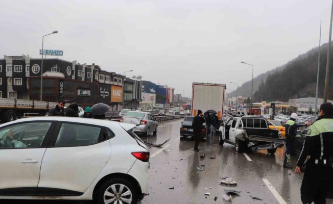 Samsun-Ordu karayolunda meydana gelen zincirleme trafik kazasında 7 araç birbirine girdi. Aynı yol üzerinde meydana gelen bir diğer kazada ise lüks otomobil bariyerlere çarparak hurdaya döndü.