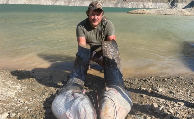 Samsunlu hobi balıkçıları baraj gölünde kendi boylarından büyük kedi balıkları tuttular. Neredeyse 2 metreyi bulan balıklar görenleri şaşkına çevirdi.