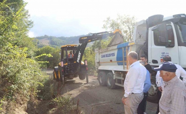 Canik’te kırsalda yol çalışması