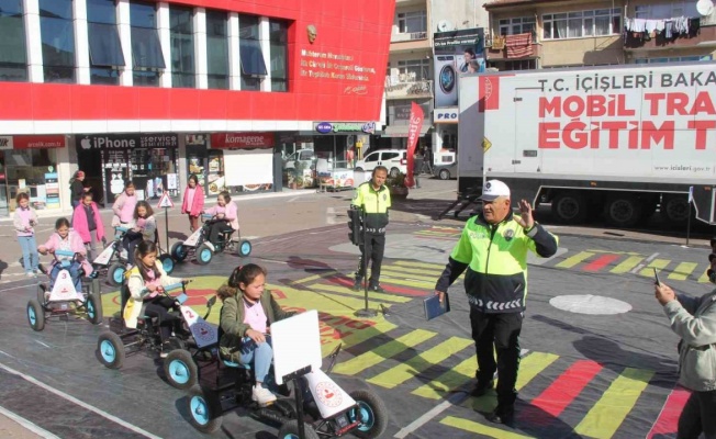 İLKOKUL ÖĞRENCİLERİNE UYGULAMALI TRAFİK EĞİTİM VERİLİYOR