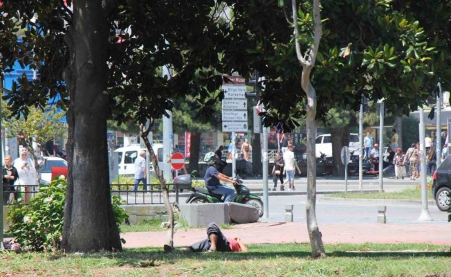 SAMSUN’DA KAVURUCU SICAKLARDAN BUNALAN VATANDAŞLAR, ÇAREYİ AĞAÇ ALTLARINDA OTURARAK VE GÖLGELERE KAÇARAK ARADI.